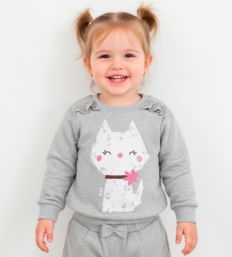 Su diseño de corte suelto permite libertad de movimiento, mientras que los puños acanalados se adaptan sin apretar, brindando un calce cómodo y agradable. Con mangas largas y un cuello redondo, este buzo es versátil, adaptándose a diversas ocasiones, desde una salida al parque hasta un día de juegos en casa.